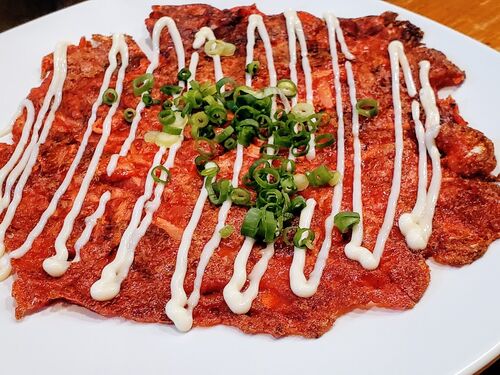 紅生姜焼きって美味しいよ🎵紅天好きな人にはお勧めです。揚げ物じゃないから家でもできて簡単おつまみになりますね