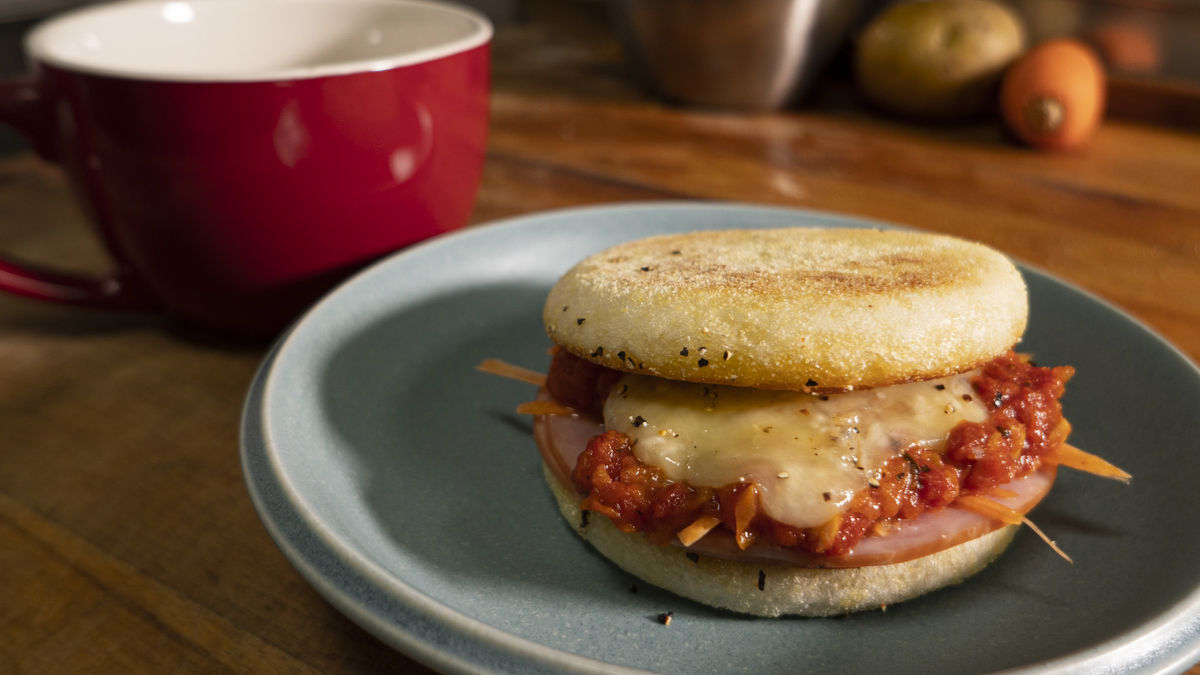 今朝はイングリッシュマフィンでハムサンドを作りましたよ🎵